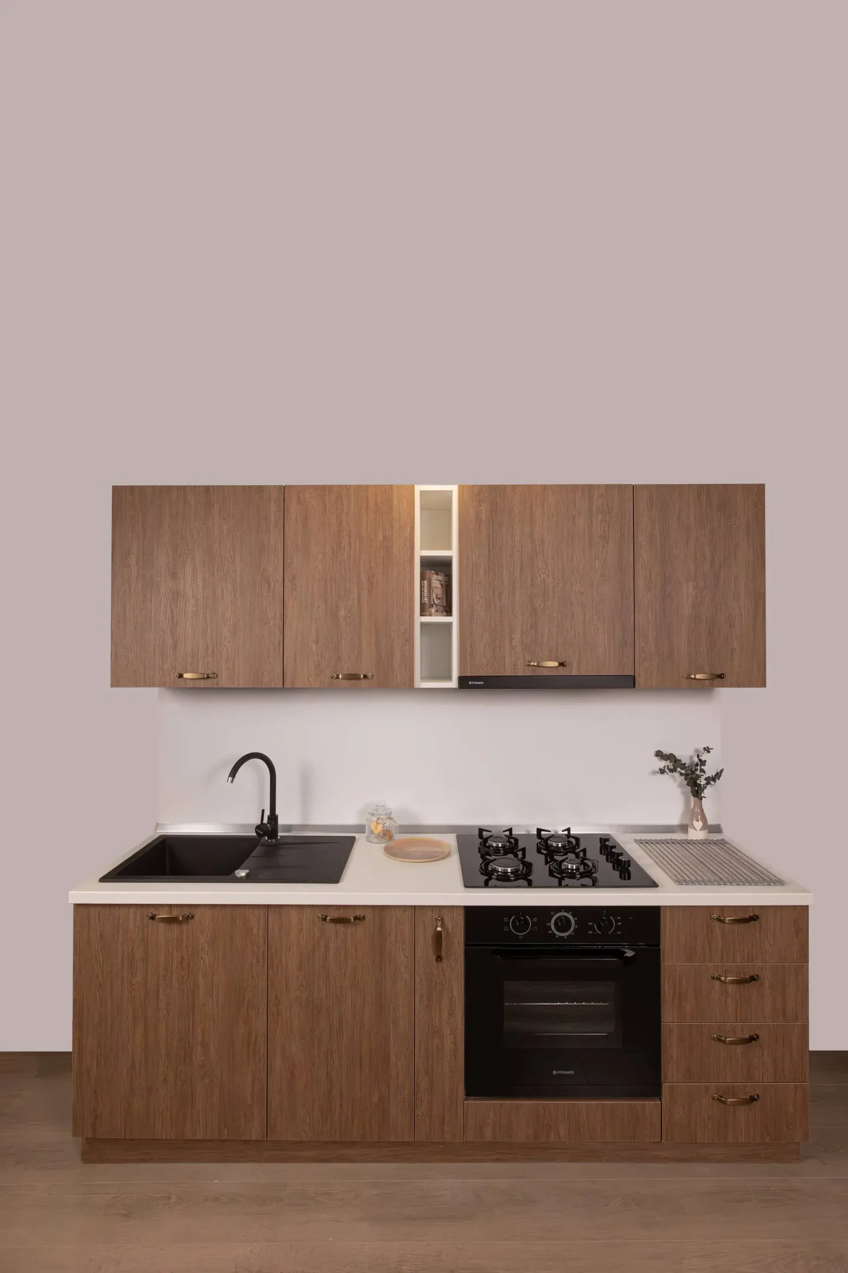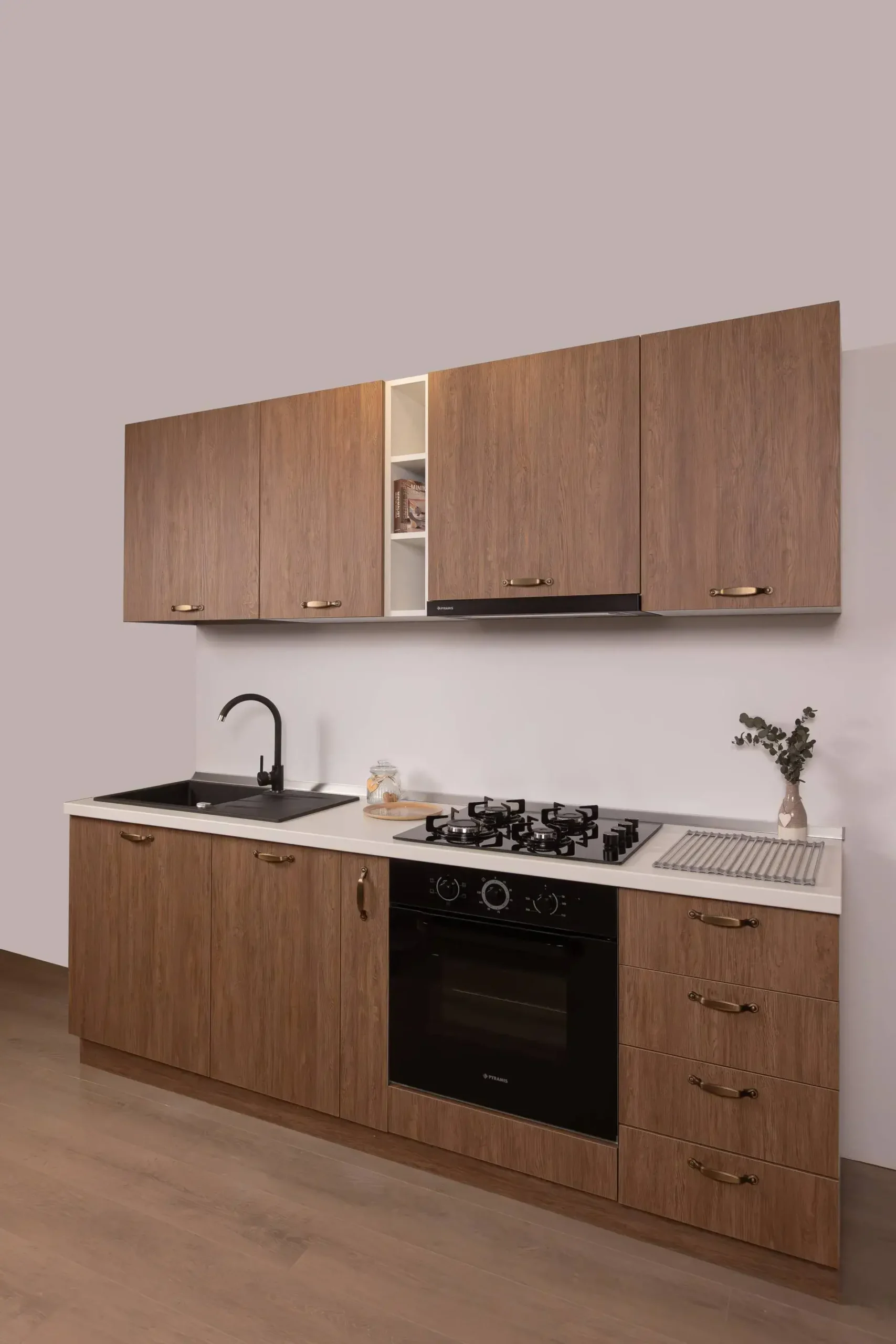 Bucătărie Modulară Completă Compact 5 – Rustic Modern & Textură Lemn Natural