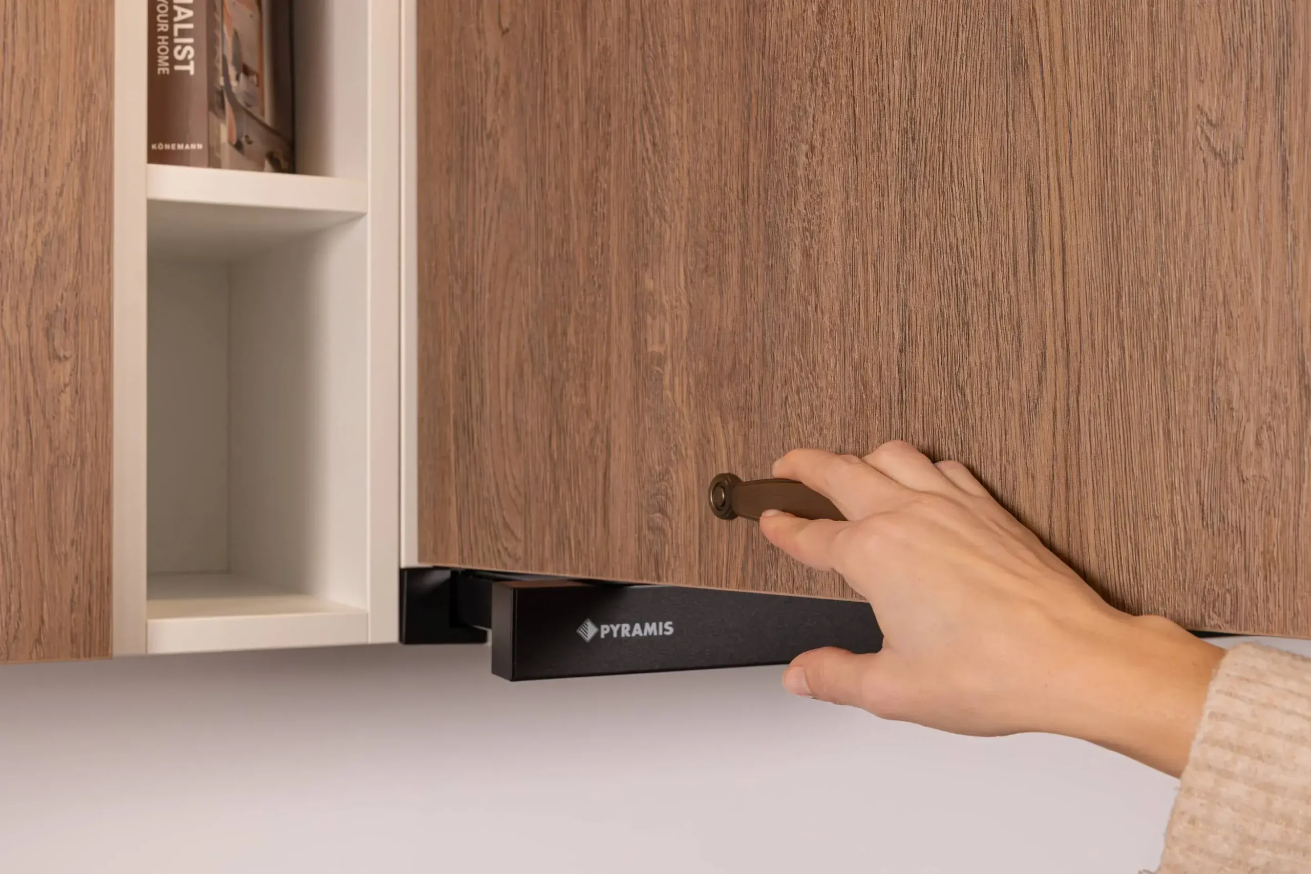 - Feronerie de Top: Uită de zgomote în bucătărie. Toate balamalele ușilor și glisierele sertarelor sunt echipate standard cu sistem de amortizare (Soft Close), pentru o închidere lentă și elegantă.