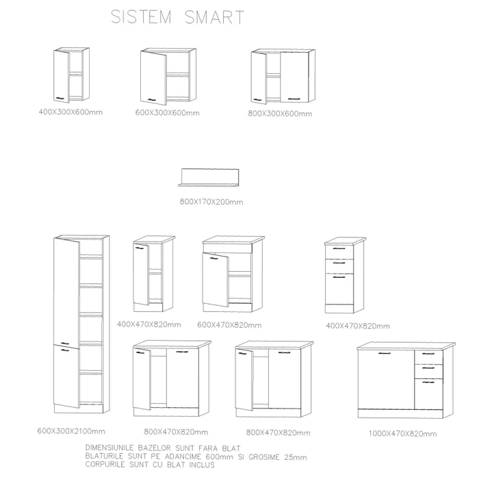 | Alege culoare fețelor de uși | Alb Titan, Bej Nisip, Gri Piatră |